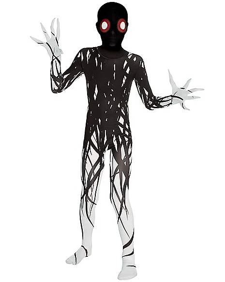 Summon chaos this year when you wear this Zalgo Skin Suit Child Costume! This skin suit features a black face mask with red and white circles for eyes which ribbons down, creating a tangled black effect that fades to a white bottom. Wear this costume and no order is sure to exist this Halloween.