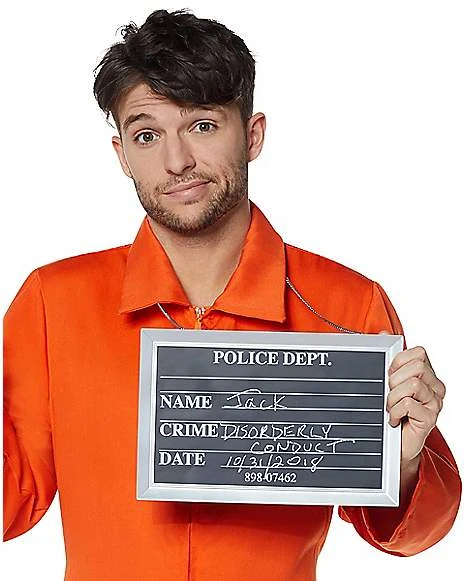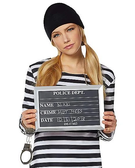 Complete your convict costume with this mugshot sign to let everyone know what crime you’ve committed.