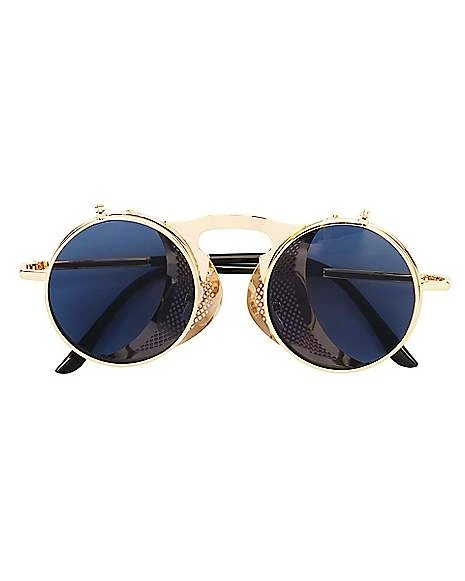 Complete your steampunk look with these stylish steampunk glasses! The tinted frames flip up so you can wear them inside, outside, and everywhere in between!